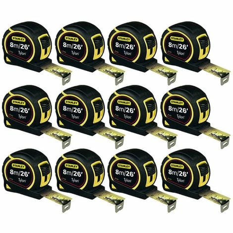 12 x Stanley Pocket Tape Measure Tylon Metre 25mm Blade 8M/26Ft 1-30-656 Loose