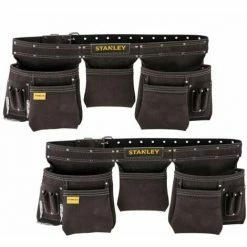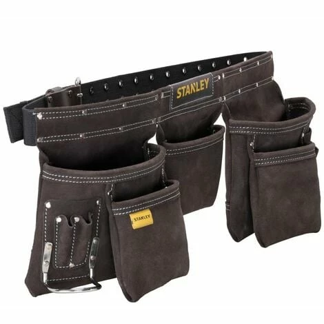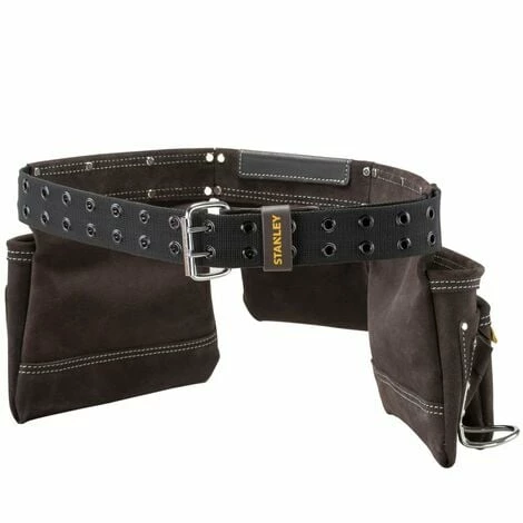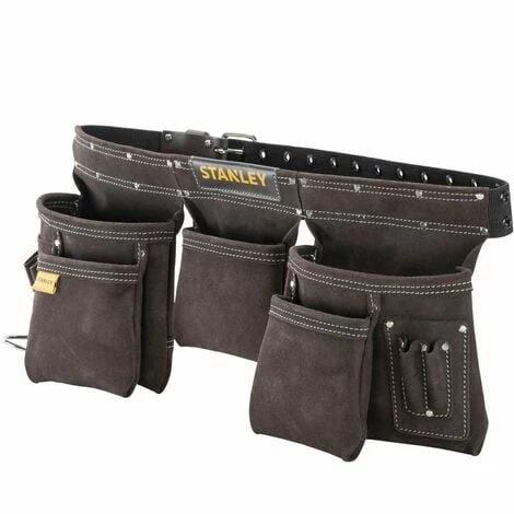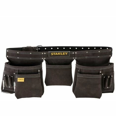 The Stanley Tools Leather Tool Apron has multiple pockets and holders for quick access on the job. The middle pocket is ideal for holding pocket tapes and there is also a steel hammer loop. Made from durable leather with rivet reinforced stress points. The apron has a sturdy, adjustable belt and a durable metal buckle. With an easy to use roller buckle. The belt is perforated to suit all waist sizes from 83-133cm.