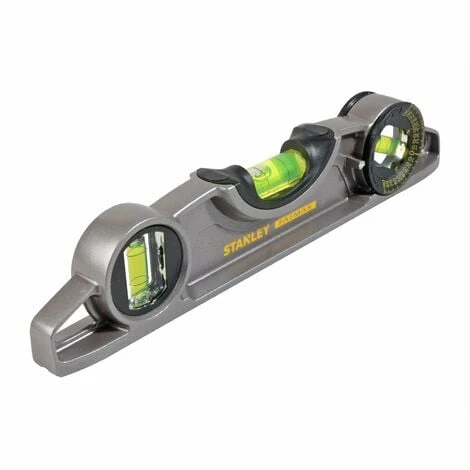 The Stanley 0-43-609 FatMax Torpedo level is 10 inches in length with 3 vials and has a V groove machined in the magnetic base, which allows it to fit firmly on pipe work, ideal for scaffolders, plus it is also perfect for installing machinery, air conditioning ducting or shelving. Its features include a precision engineered die-cast lightweight aluminium body for amazing strength and solid-block acrylic vials for best-in-class accuracy.