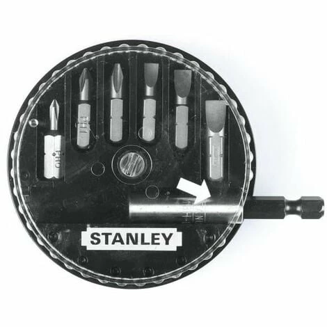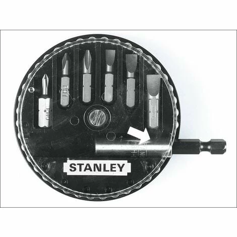 This 7-piece screwdriver bit set contains 6 x 25mm assorted screwdriver bits and a magnetic holder.