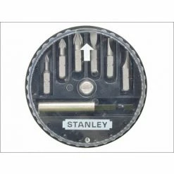 This 7-piece screwdriver bit set contains 6 x 25mm assorted screwdriver bits and a magnetic holder.
