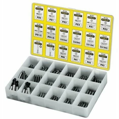 A 200-piece bit set containing 10 magnetic bit holders and a selection of Pozidriv, Phillips and Slotted 25mm long bits.