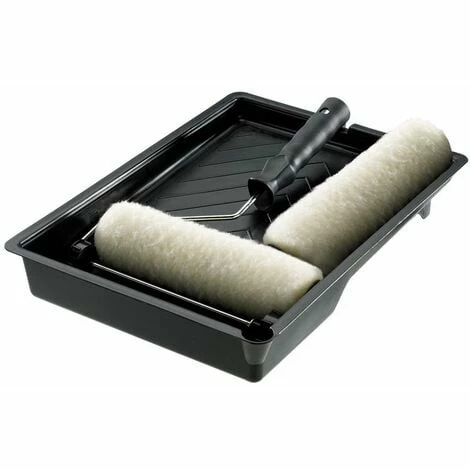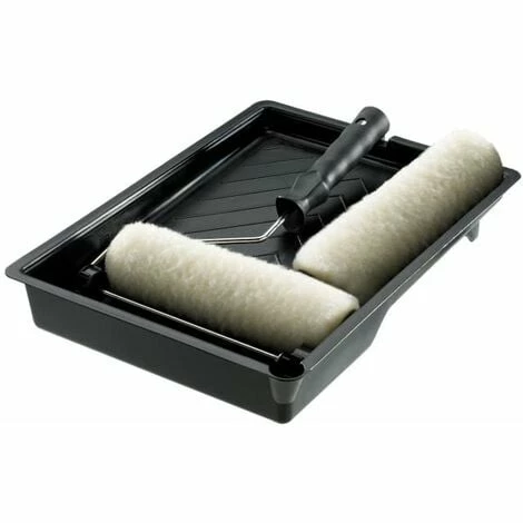 Push-on type roller frame with moulded and shaped handle. Supplied with 2 medium pile polyester rollers and a paint tray.