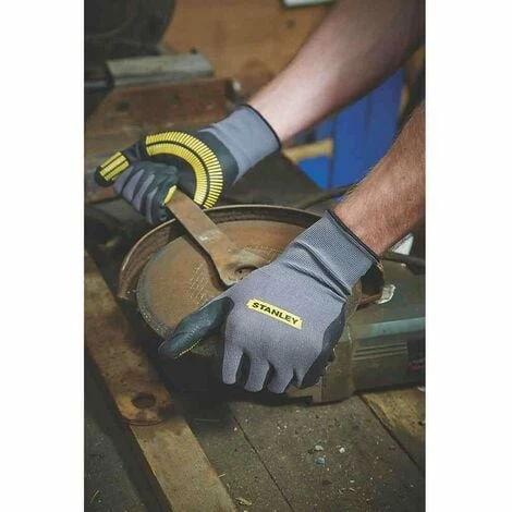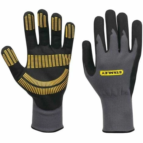 The Stanley SY510 Razor Tread Gripper Gloves have a seamless liner for increased flexibility and comfort. The nitrile-coated, razor-tread patterned palm provides increased grip. Lightweight and breathable with elasticated cuffs for comfort. These gloves are machine washable.