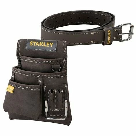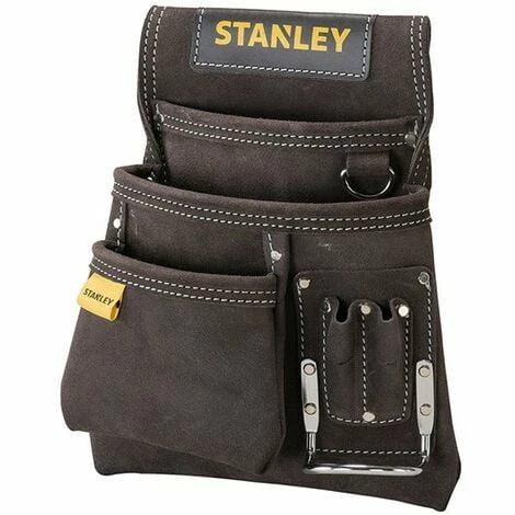 Stanley leather belt mounted pouch with hammer loop. High quality genuine leather (Suede), easy access pockets, wide belt slot and reinforced rivets around the stress points result in a professional trade product ideal for everyday use.