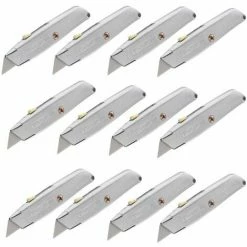 The Stanley 99E Original Retractable Blade Knife is made from grey painted die-cast metal body, which is ergonomically shaped for a good, comfortable grip. The blade extension can be controlled by the blade shifter, and 5 blade position allows a wider usage for a variety of cutting applications. The interlock nose firmly secures the blade into knife. For safety, the blade can be fully retracted into the body.