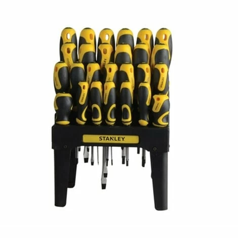 26 Piece Stanley Screwdriver Set, contains a selection of useful screwdrivers for everyday use. Fitted with comfortable handles and supplied in a handy storage rack. Contains the following: