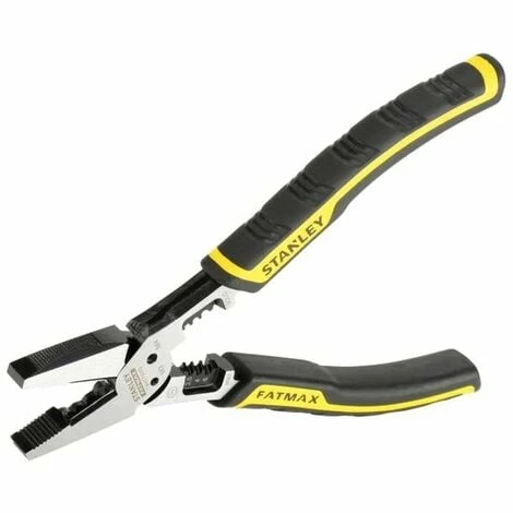 These Stanley FatMax® 6-In-1 Combination Pliers are made from drop forged CR-V steel, engineered to provide durability. Fitted with bi-material handles that provide an ergonomic grip and feel whilst also reducing fatigue and slippage. The universal jaw has a serrated gripping face with a universal cutting edge that is designed to cut wires up to and including 2.0mm Piano Wire. It also has a wire stripper which strips three sizes of wire; 2.5, 4 & 6mm. It can be used as a wrench, with a multi-point grip to tighten nuts and bolts with a hexagonal head and as a bolt cropper to cut M3.5 & M5 bolts, threaded for an accurate cut.