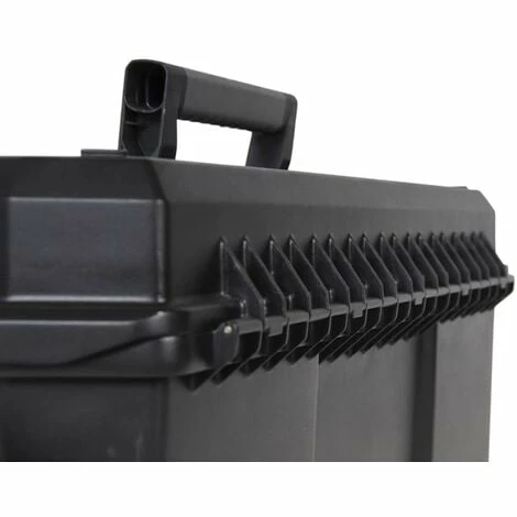 This tool box with a large capacity and removable tool tray is a great organiser for your tools. It is made of durable plastic and portable. With the push lock, your tools are kept safe inside. The V-groove in the cover will help you get the perfect cut on pipes and timber when a workbench is not present.