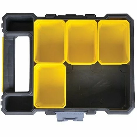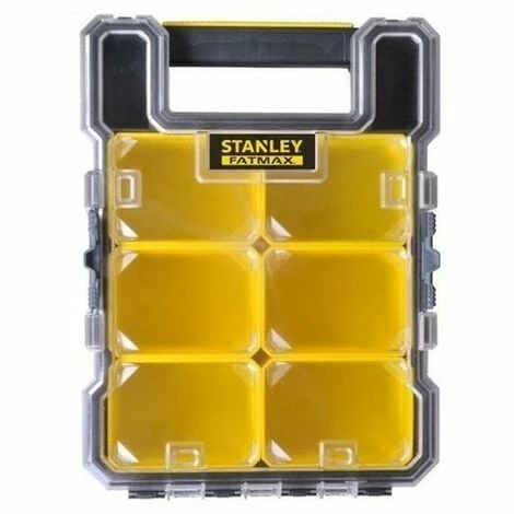 The Stanley FatMax Small Organiser is made from durable Polycarbonate plastic with a water seal, meaning that it is suitable for outdoor use. It has 6 removable cups to allow flexible configurations and a transparent lid for easy viewing of stored parts.